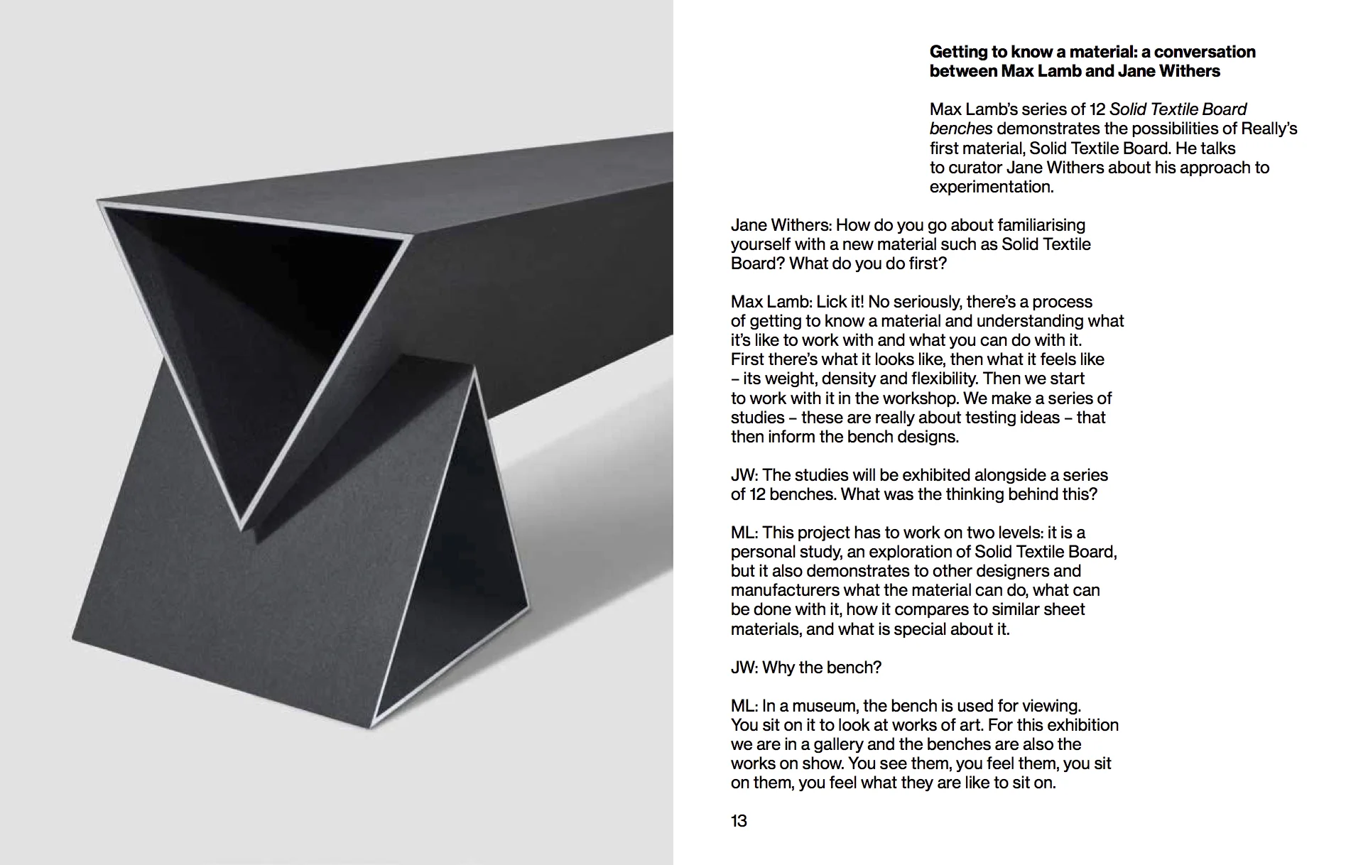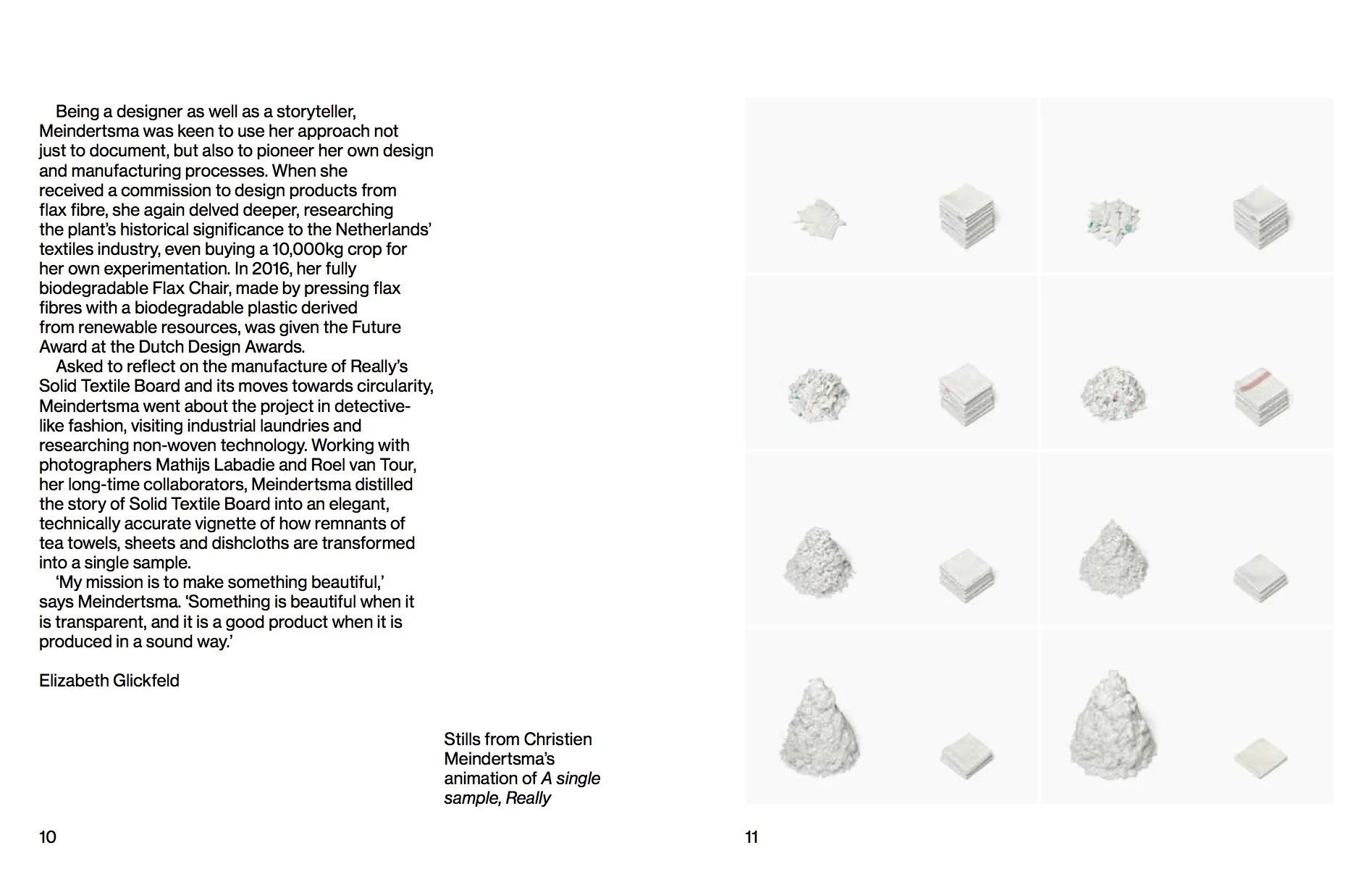 Accompanying the exhibition at Salone del Mobile 2017, this publication tells the story of Really and examines the topical issue of how we can move to a circular economy model. Designed by Kellenberger-White, the publication features two catalogues: one which tells the story of Really, and the other framing the projects of Max Lamb and Christien Meindertsma for the exhibition marking the debut collection using Solid Textile Board in Milan 2017. The publication shows the commissioning and editing process of the two designers, and explores the potential of the circular economy with interviews and text by Jane Withers, Sophie Thomas, and Elizabeth Glickfield.
